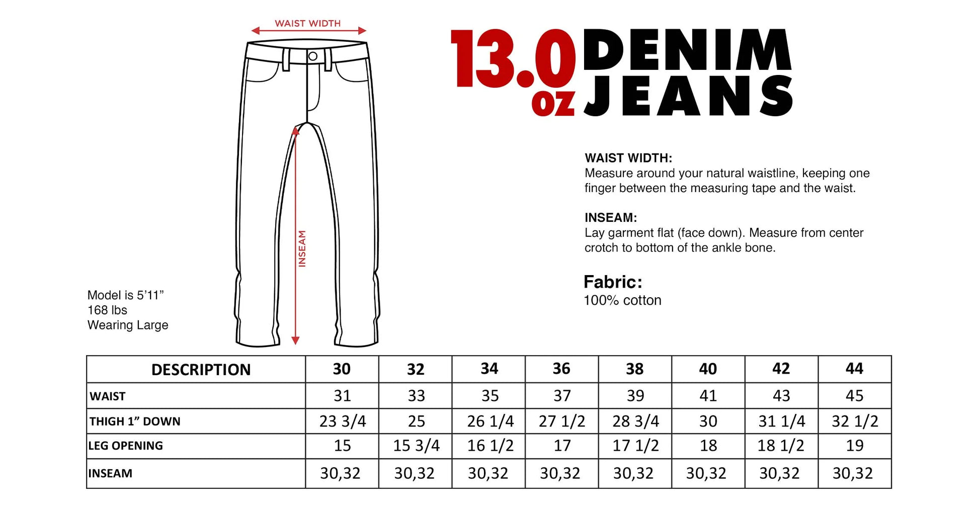 Printed on Shaka Wear Raw Denim. 32" inseam on all pairs.